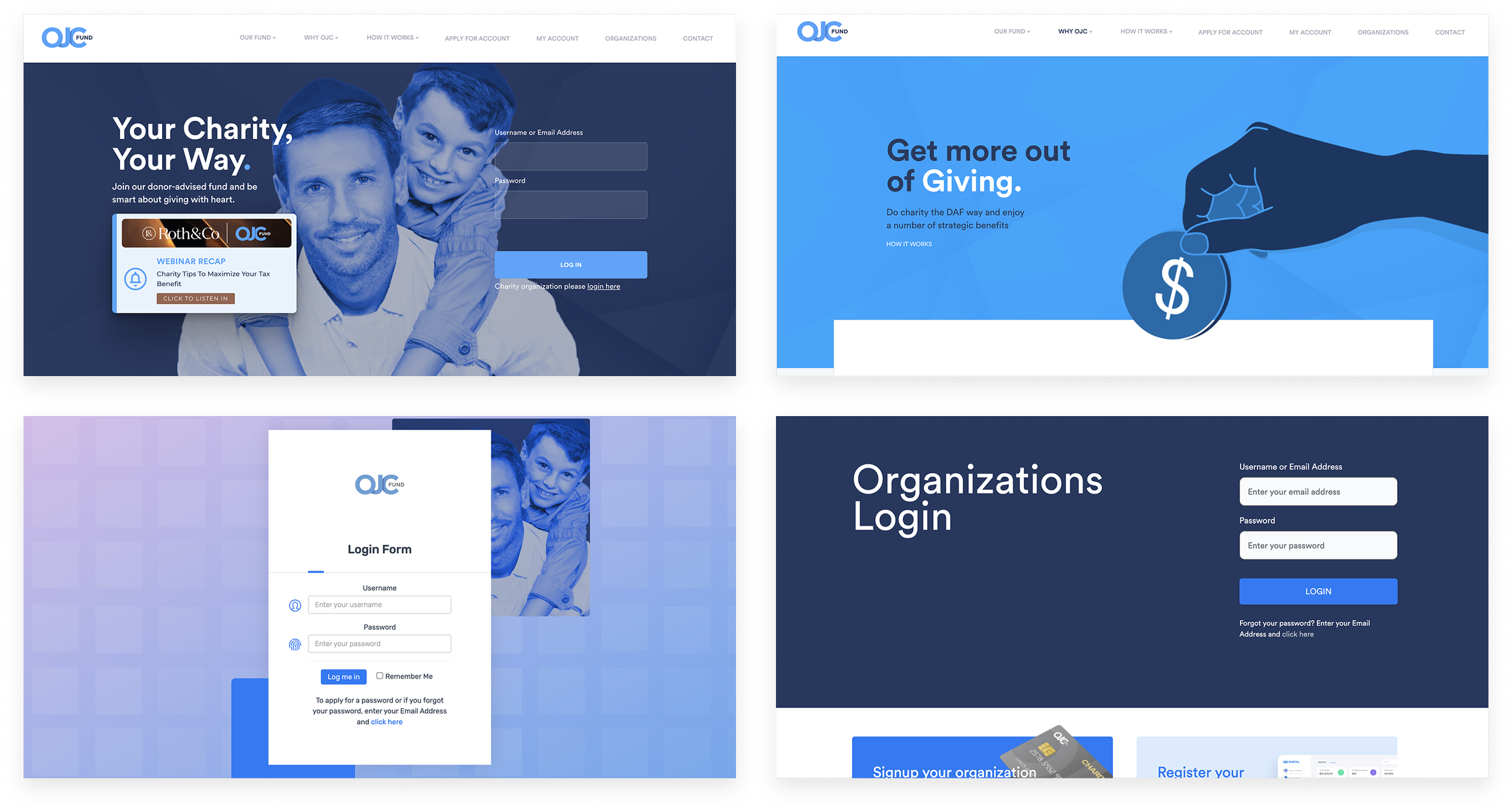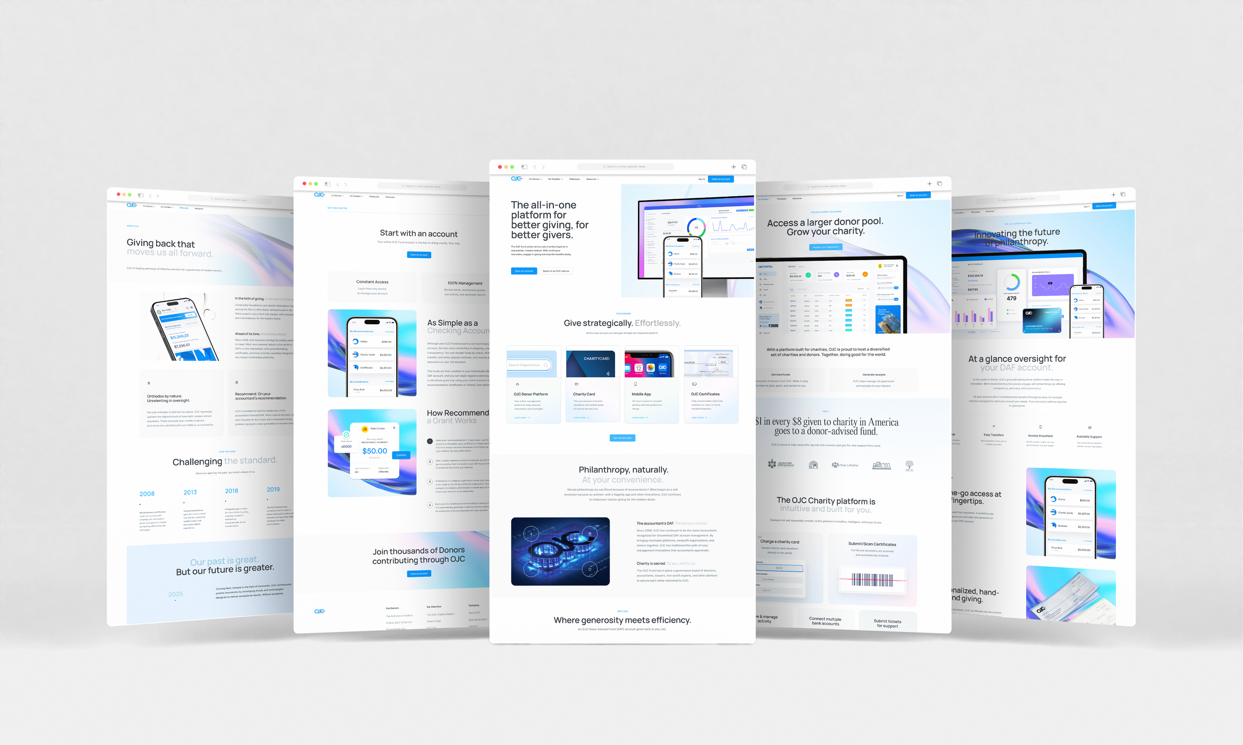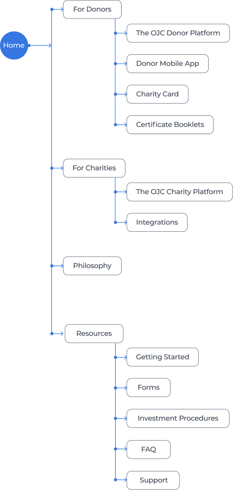 The OJC Fund serves individual and family donors managing charitable giving through donor-advised funds, nonprofit organizations using the platform to coordinate contributions, and first-time donors who need clear guidance to understand where to begin. These users value simplicity, trust, transparency, and intuitive navigation, which directly informed decisions around reorganizing the information architecture, clarifying messaging, and creating a guided donor journey.